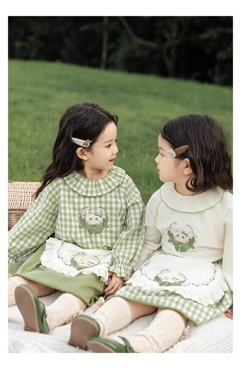 Korean Baby Girl Clothes Embroidered Girl's Shirt Fashion Design Skirt Casual Cotton Boutique Children's Clothing